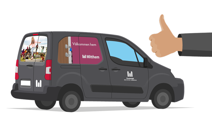 Våra tjänstebilar är elbilar, våra kvartersvärdar bidrar på så sätt varje dag till att minska koldioxidutsläppen.