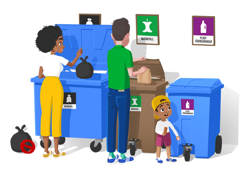 Vi vill hjälpa våra hyresgäster att göra rätt. Med hållbarhetsskolan får alla våra hyresgäster kunskap om varför det är viktigt att sortera sina sopor och hur de ska göra det. Oavsett ålder eller språk ska det vara enkelt att göra bra miljöval varje dag.